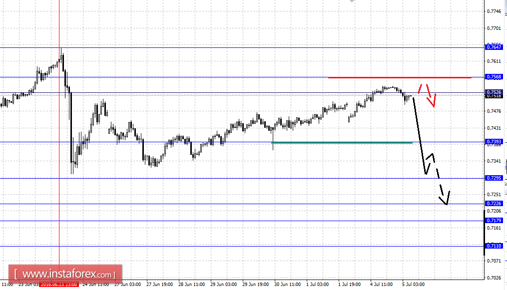 Краткосрочное восходящее движение возможно в коридоре 0.7526 – 0.7568, пробой последнего значения позволит рассчитывать на движение к потенциальной цели – 0.7647.