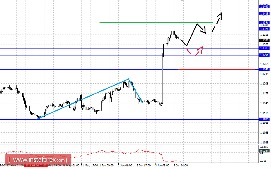 Краткосрочное нисходящее движение возможно в коридоре 1.1313 – 1.1291, пробой последнего значения приведет к углубленной коррекции, здесь цель – 1.1248, этот уровень является ключевой поддержкой для восходящей структуры.