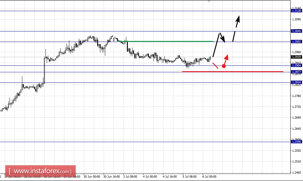 Краткосрочное нисходящее движение возможно в коридоре 1.2904 – 1.2877, пробой последнего значения будет располагать к формированию нисходящего потенциала, здесь цель – 1.2834.