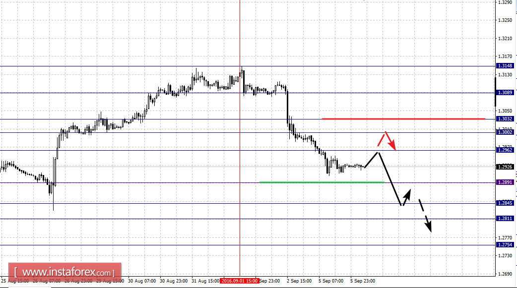 Краткосрочное восходящее движение возможно после пробоя 1.2962, здесь цель – 1.3002, в коридоре 1.3002 – 1.3032 консолидация цены и этот диапазон является ключевой поддержкой для нисходящей структуры, его проход ценой будет располагать к развитию восходящего движения в масштабе Н1, в данном случае цель – 1.3089.