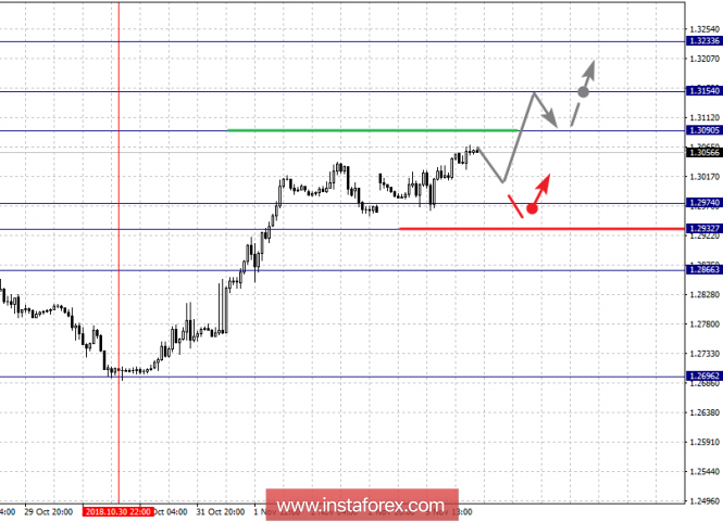 По паре Евро/Доллар развития восходящей структуры от 31 октября ожидаем после пробоя 1.1424. По паре Фунт/Доллар продолжения движения кверху ожидаем после пробоя 1.3090. По паре Доллар/Франк ситуация находится в равновесном состоянии: нисходящая структура от 31 октября, а также формирование потенциала для низа от 2 ноября. По паре Доллар/Иена продолжения движения кверху ожидаем после пробоя 113.46. По паре Евро/Иена ожидаем движение к уровню 129.50, нисходящее движение рассматриваем в качестве коррекции. По паре Фунт/Иена цена находится возле предельных значений для восходящей структуры от 26 октября, ожидаем уход в коррекцию.