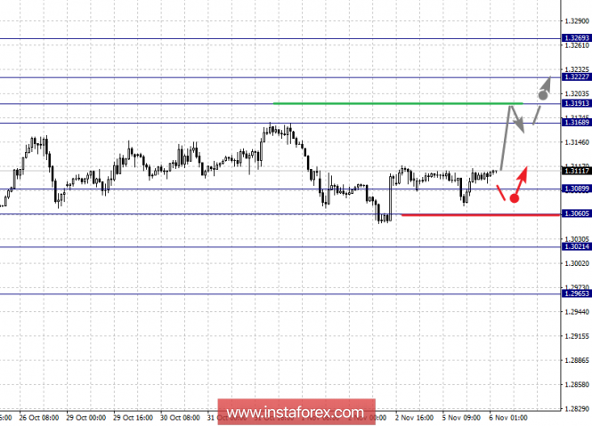 Краткосрочное нисходящее движение возможно в коридоре 1.3089 – 1.3060, отсюда высока вероятность разворота кверху, пробой уровня 1.3060 приведет к затяжной коррекции, здесь цель – 1.3021.