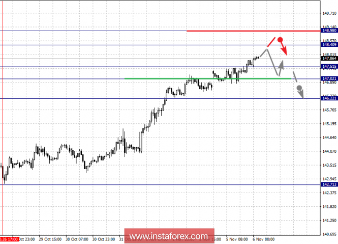 Краткосрочное нисходящее движение возможно в коридоре 147.51 – 147.02, пробой последнего значения приведет к затяжной коррекции, здесь цель – 146.22, этот уровень является ключевой поддержкой для восходящей структуры.