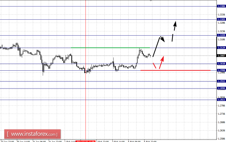 По паре Евро/Доллар ключевыми уровнями в масштабе Н1 являются: 1.1076, 1.0953, 1.0900, 1.0812, 1.0766, 1.0732, 1.0684, 1.0620 и 1.0557. Здесь мы продолжаем следить за восходящей структурой от 30 января. Продолжения движения кверху ожидаем после пробоя 1.0812, в данном случае цель – 1.0900, по достижении этого уровня ожидаем консолидацию в коридоре 1.0900 – 1.0953. Потенциальным значением для верха считаем уровень 1.1076, движение к которому ожидаем после пробоя 1.0955.