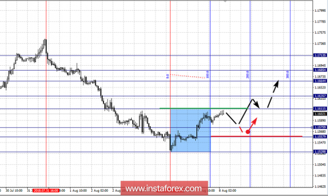 Краткосрочное нисходящее движение возможно в коридоре 1.1577 – 1.1557, отсюда высока вероятность разворота кверху, пробой уровня 1.1555 приведет к развитию нисходящей структуры, в данном случае цель – 1.1528.