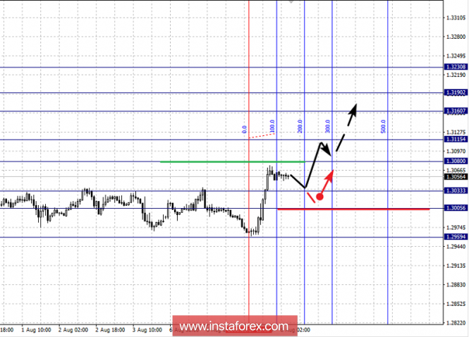 Краткосрочное нисходящее движение возможно в коридоре 1.3033 – 1.3005, отсюда высока вероятность разворота кверху, пробой уровня 1.3005 приведет к развитию нисходящей структуры, в данном случае цель – 1.2959.