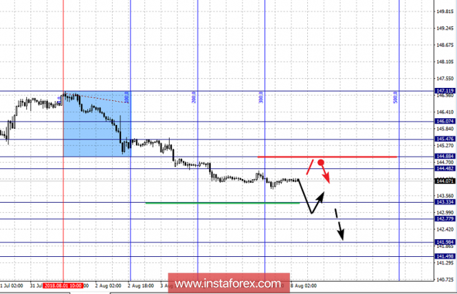 Краткосрочное восходящее движение возможно в коридоре 144.48 – 144.88, пробой последнего значения приведет к углубленной коррекции, здесь цель – 145.47 этот уровень является ключевой поддержкой для низа, его пробой будет располагать к формированию восходящей структуры, в данном случае цель – 146.07.