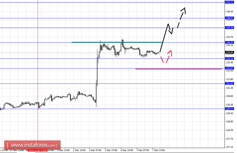 Краткосрочное нисходящее движение возможно в коридоре 133.23 – 132.57, пробой последнего значения приведет к углубленной коррекции, здесь цель – 129.64.