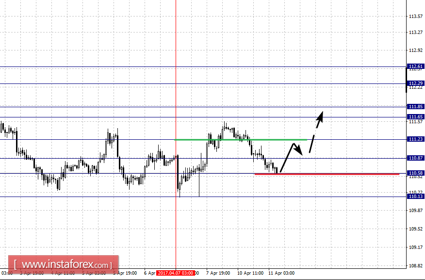 Диапазон 110.87 – 110.58 является ключевой поддержкой для верха, его проход ценой будет располагать к развитию нисходящей структуры, в данном случае первая потенциальная цель – 110.13.