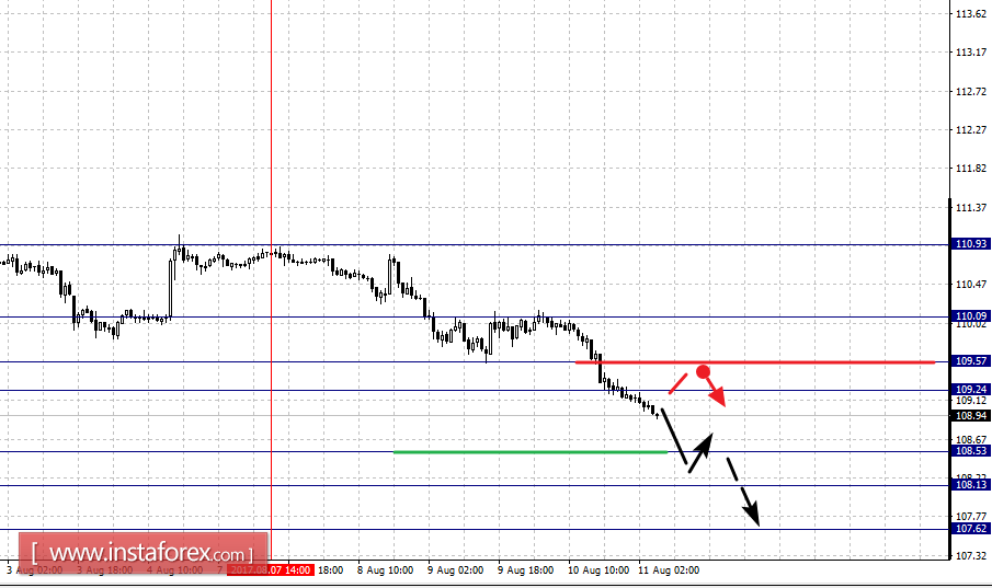 Краткосрочное восходящее движение возможно в коридоре 109.24 – 109.57, пробой последнего значения приведет к углубленной коррекции, здесь цель 110.09, этот уровень является ключевой поддержкой для нисходящей структуры.