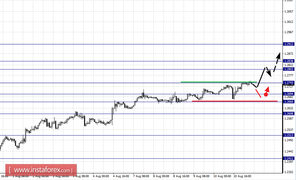 Краткосрочное нисходящее движение возможно в коридоре 1.2694 – 1.2660, пробой последнего значения приведет к углубленной коррекции, здесь цель – 1.2608, этот уровень является ключевой поддержкой для верха.