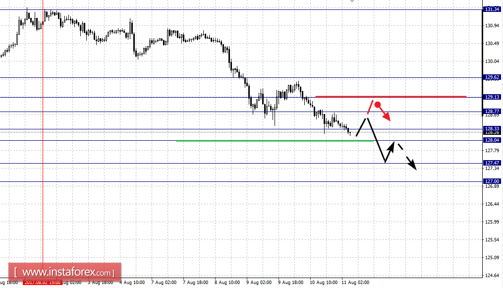 Краткосрочное восходящее движение возможно в коридоре 128.77 – 129.13, пробой последнего значения приведет к углубленной коррекции, здесь цель – 129.60, этот уровень является ключевой поддержкой для нисходящей структуры.