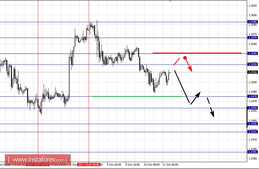 Краткосрочное восходящее движение возможно в коридоре 1.2528 – 1.2542, пробой последнего значения приведет к углубленной коррекции, здесь цель – 1.2570, этот уровень является ключевой поддержкой для нисходящей структуры.