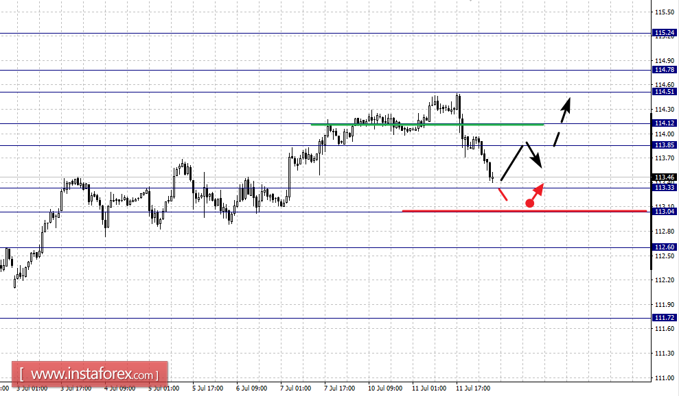 Краткосрочное нисходящее движение возможно в коридоре 113.33 – 113.04, пробой последнего значения будет располагать к развитию нисходящей структуры, в данном случае цель – 112.60.