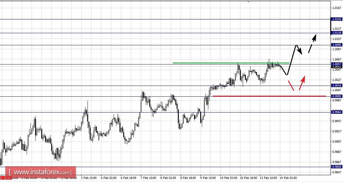 Краткосрочное нисходящее движение возможно в диапазоне 1.0016 – 0.9995, пробой последнего значения приведет к углубленной коррекции, здесь цель – 0.9964, этот уровень является ключевой поддержкой для верха.
