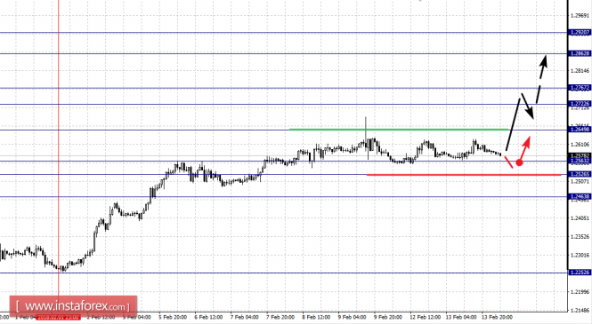 Краткосрочное нисходящее движение возможно в коридоре 1.2563 – 1.2526, пробой последнего значения приведет к углубленной коррекции, здесь цель – 1.2463, этот уровень является ключевой поддержкой для верха.