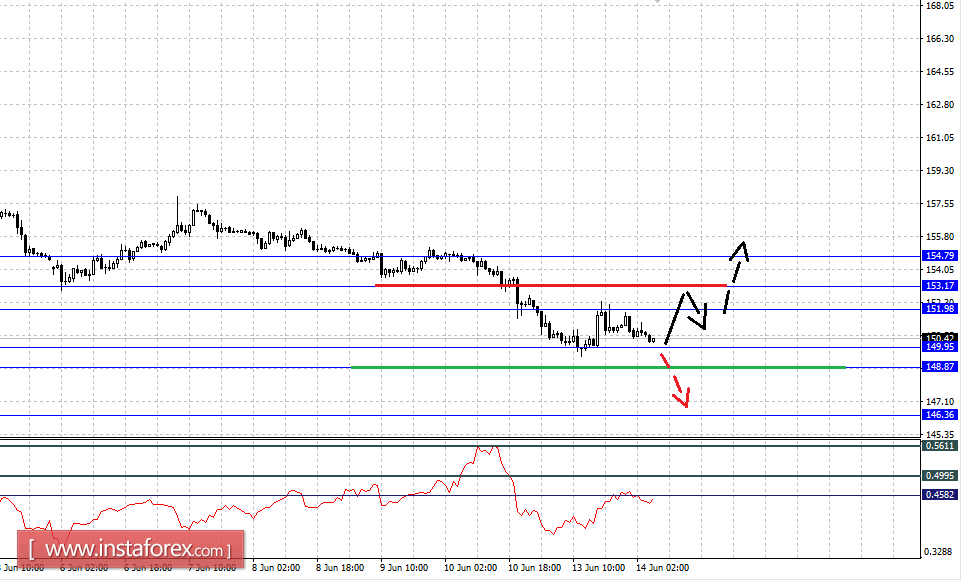 Краткосрочное восходящее движение возможно в коридоре 151.98 – 153.17, пробой последнего значения приведет к углубленному движению, здесь цель 154.79, этот уровень является ключевой поддержкой для верха.