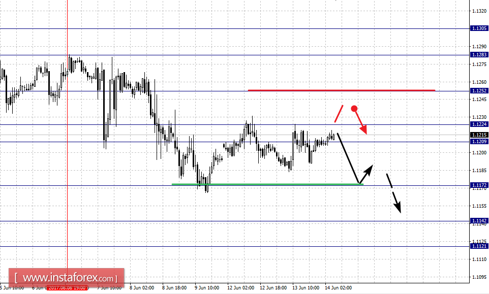 По паре Евро/Доллар продолжения развития нисходящей структуры от 6 июня ожидаем после пробоя 1.1172, на текущий момент цена находится в коррекции. По паре Фунт/Доллар следим за нисходящей структурой от 8 июня. По паре Доллар/Франк восходящую структуру от 6 июня рассматриваем в качестве основного направления. По паре Доллар/Иена следим за восходящей структурой от 7 июня, уровень 109.57 является ключевой поддержкой. По паре Евро/Иена следим за нисходящей структурой от 2 июня. По паре Фунт/Иена цена находится в коррекции и формирует потенциал для верха от 12 июня.