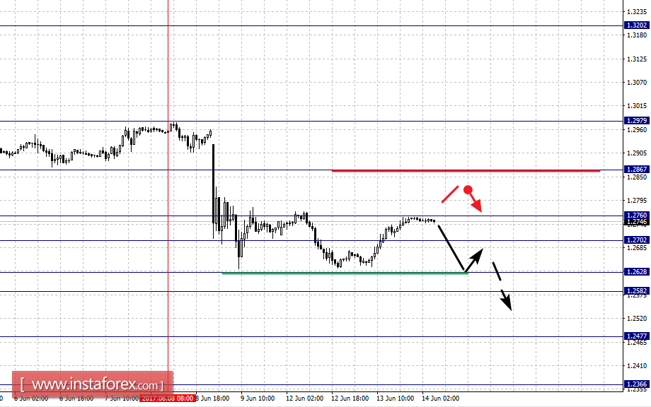 По паре Доллар/Франк ключевыми уровня в масштабе Н1 являются: 0.9763, 0.9738, 0.9721, 0.9660, 0.9636, 0.9615, 0.9562 и 0.9528. Здесь мы следим за восходящей структурой от 6 июня в качестве основной. Краткосрочное нисходящее движение возможно в коридоре 0.9660 – 0.9636, пробой последнего значения продолжит развитие основной структуры, здесь первая цель – 0.9615, пробой которой, в свою очередь, должен сопровождаться выраженным нисходящим движением, здесь цель – 0.9562. Потенциальным значением для низа считаем уровень 0.9528.