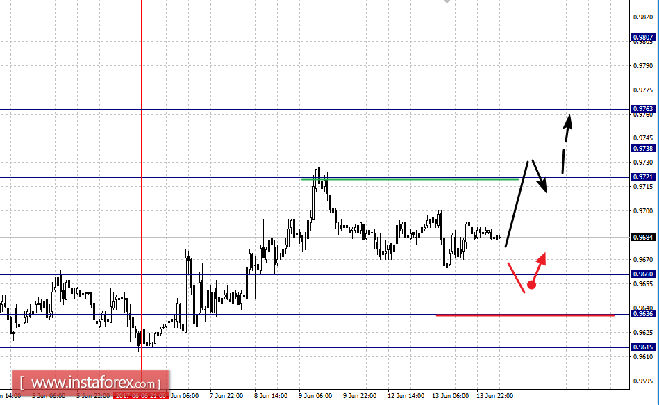 Краткосрочное восходящее движение возможно в коридоре 0.9721 – 0.9738, пробой последнего значения приведет к движению до уровня 0.9763, до этого уровня мы ожидаем формирования выраженных начальных условий для восходящего цикла.