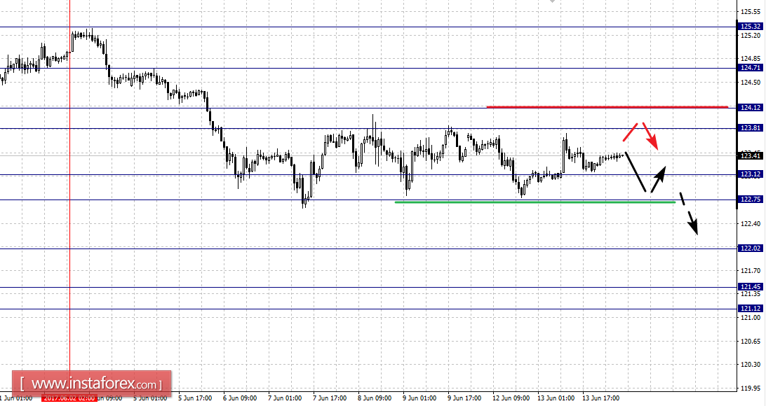 Краткосрочное нисходящее движение возможно в коридоре 123.81 – 124.12, пробой последнего значения приведет к углубленной коррекции, здесь цель – 124.71, этот уровень является ключевой поддержкой для низа.