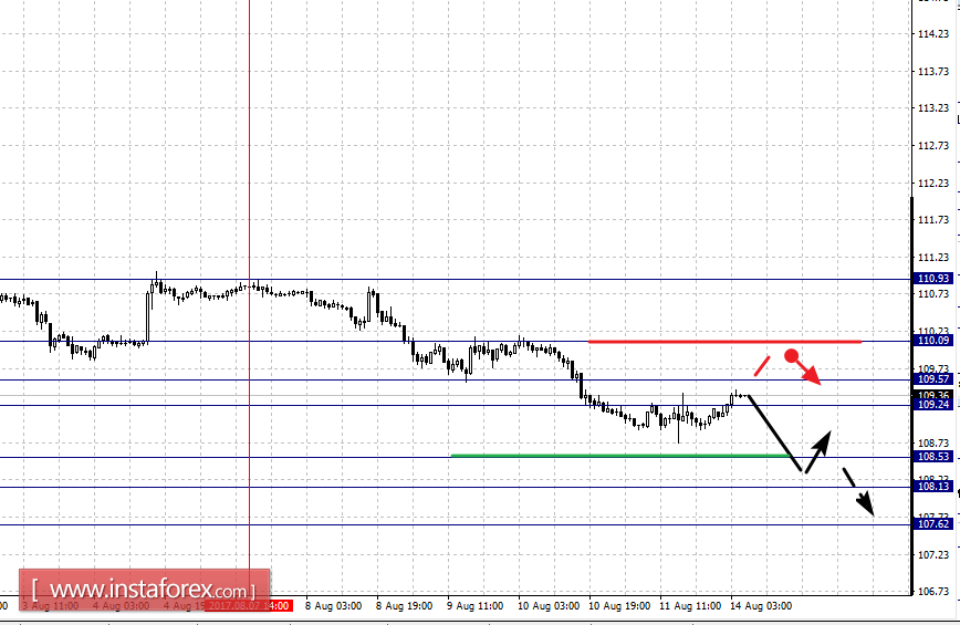 Краткосрочное восходящее движение возможно в коридоре 109.24 – 109.57, пробой последнего значения приведет к углубленной коррекции, здесь цель 110.09, этот уровень является ключевой поддержкой для нисходящей структуры.