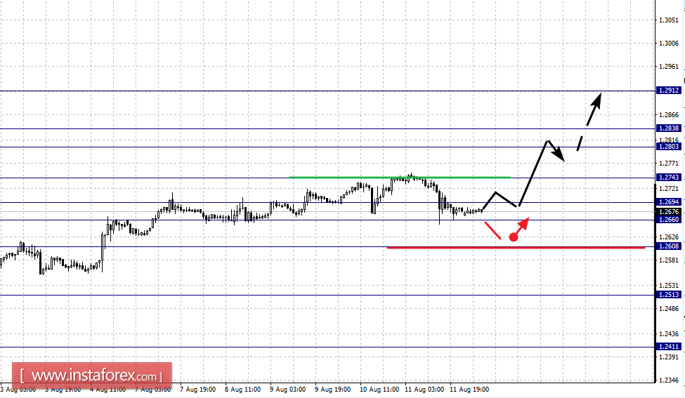 Краткосрочное нисходящее движение возможно в коридоре 1.2694 – 1.2660, пробой последнего значения приведет к углубленной коррекции, здесь цель – 1.2608, этот уровень является ключевой поддержкой для верха.