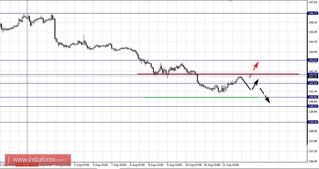 Консолидированное движение ожидаем в коридоре 141.91 – 142.51, пробой последнего значения приведет к углубленной коррекции, здесь цель – 143.51, этот уровень является ключевой поддержкой для низа.