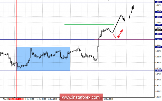 Краткосрочное нисходящее движение возможно в коридоре 0.9949 – 0.9924, пробой последнего значения приведет к углубленной коррекции, здесь цель – 0.9890, этот уровень является ключевой поддержкой для верха.