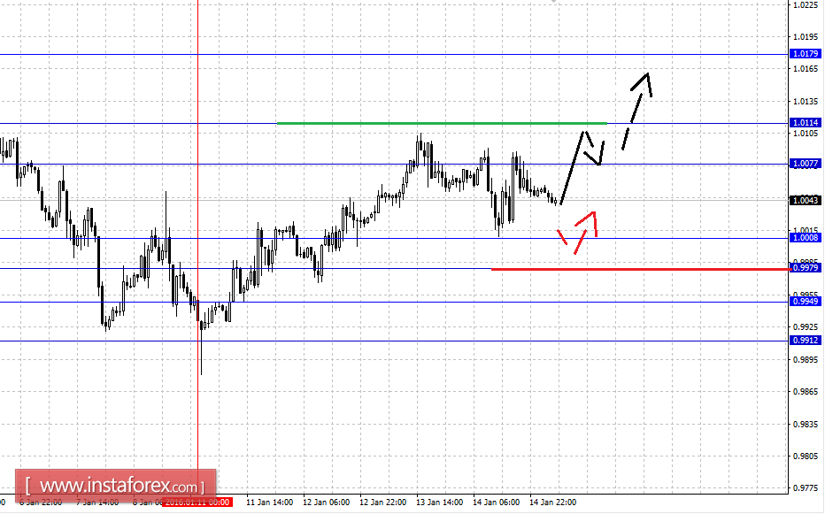 Краткосрочное нисходящее движение возможно в коридоре 1.0008 – 0.9979, пробой последнего значения приведет к углубленному движению, здесь цель – 0.9949, возле этого уровня консолидация и он является ключевой поддержкой для восходящей структуры.