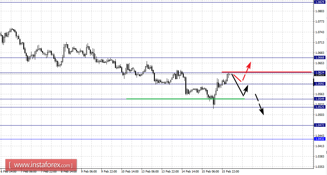 По паре Евро/Доллар ключевыми уровнями в масштабе Н1 являются: 1.0668, 1.0624, 1.0592, 1.0549, 1.0525, 1.0472 и 1.0432. Здесь мы продолжаем следить за нисходящей структурой от 2 февраля, на текущий момент цена находится в корректировочной зоне. Продолжения движения книзу ожидаем после прохода ценой шумового диапазона 1.0549 – 1.0525, в данном случае цель – 1.0472, возле этого уровня консолидация. Потенциальным значением для низа считаем уровень 1.0432, по достижении которого ожидаем откат в коррекцию.