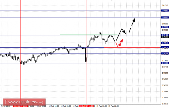 Краткосрочное нисходящее движение возможно в коридоре 0.7897 – 0.7869, пробой последнего значения приведет к углубленной коррекции, здесь цель – 0.7830, этот уровень является ключевой поддержкой для верха.