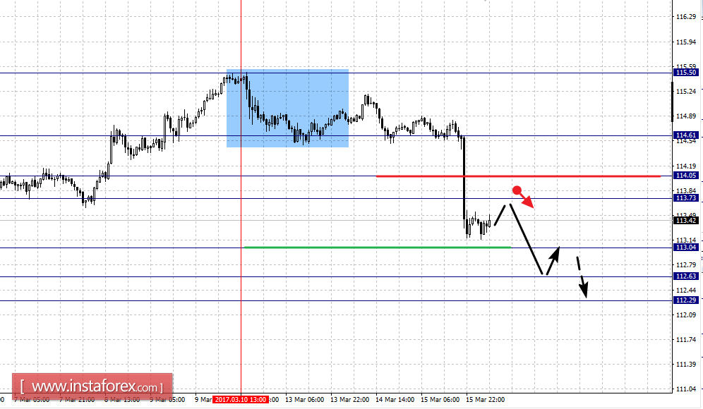 Краткосрочное восходящее движение возможно в коридоре 113.73 – 114.05, пробой последнего значения приведет к углубленной коррекции, здесь цель – 114.61, этот уровень является ключевой поддержкой для нисходящей тенденции.