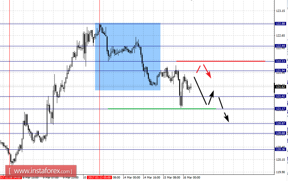 Краткосрочное восходящее движение возможно в коридоре 121.94 – 122.13, пробой последнего значения приведет к углубленному движению, здесь цель – 122.44.