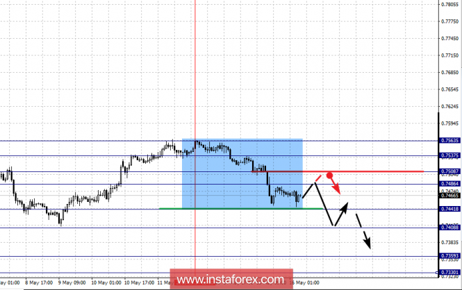 По паре Австралийский доллар/Доллар ключевыми уровнями в масштабе Н1 являются: 0.7563, 0.7537, 0.7508, 0.7486, 0.7441, 0.7408, 0.7359 и 0.7330. Здесь после отмены формирования восходящего потенциала мы следим за формированием нисходящей структуры от 14 мая. Краткосрочное нисходящее движение ожидаем в коридоре 0.7441 – 0.7408, пробой последнего значения приведет к развитию выраженного движения, здесь цель – 0.7359. Потенциальным значением для верха считаем уровень 0.7330, по достижении которого ожидаем откат кверху.