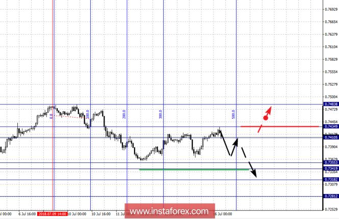 Краткосрочное восходящее движение возможно в коридоре 0.7410 – 0.7434, пробой последнего значения будет располагать к развитию восходящей структуры, здесь потенциальная цель – 0.7483.