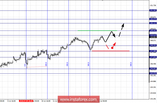Краткосрочное нисходящее движение возможно в коридоре 148.10 – 147.58, пробой последнего значения приведет к углубленной коррекции, здесь цель – 147.04, этот уровень является ключевой поддержкой для восходящей структуры.