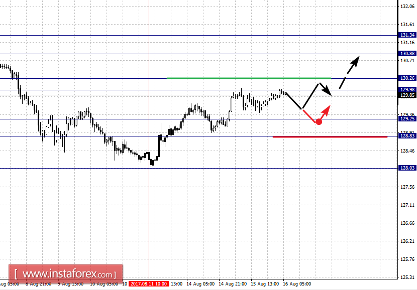 Краткосрочное нисходящее движение возможно в коридоре 129.25 – 128.83, пробой последнего значения приведет к развитию нисходящей структуры, в данном случае цель – 128.03.