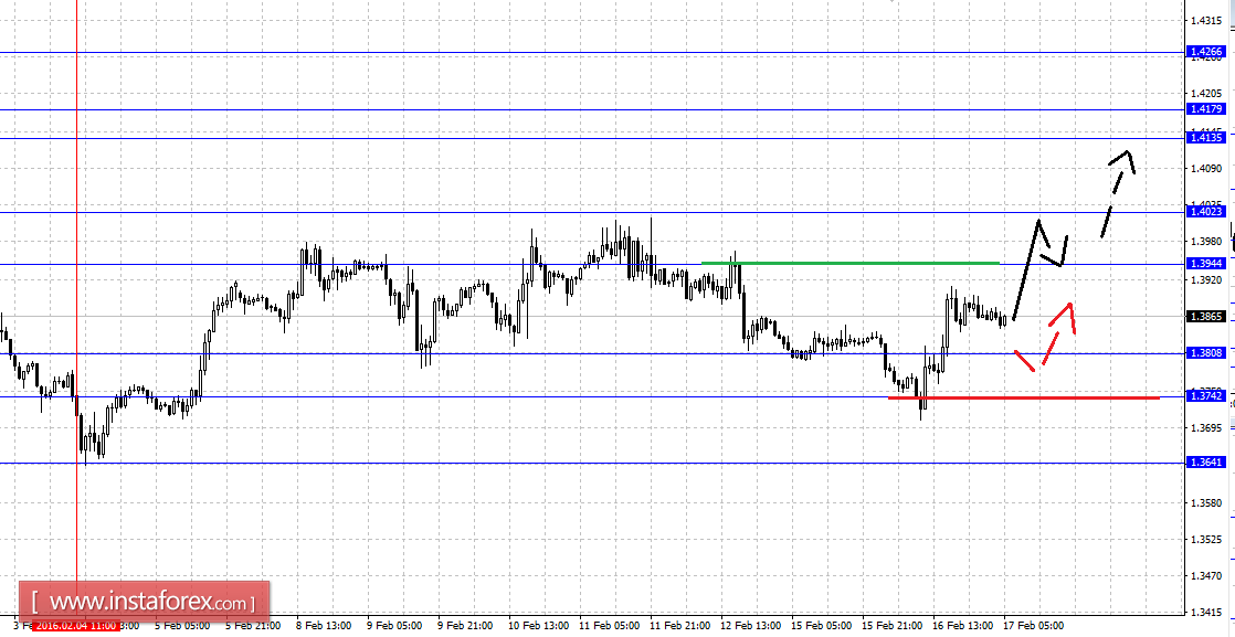 Краткосрочное нисходящее движение возможно в коридоре 1.3808 – 1.3742, пробой последнего значения приведет к развитию нисходящей структуры, здесь первая цель – 1.3641.