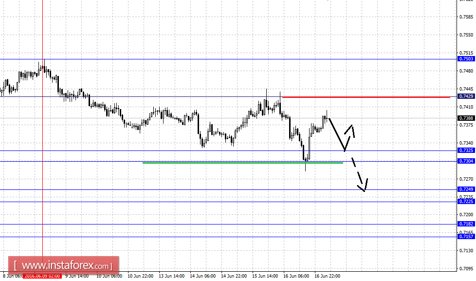 Уровень 0.7430 является ключевой поддержкой для нисходящего движения, его проход ценой будет располагать к развитию восходящей структуры, в данном случае потенциальная цель – 0.7503.