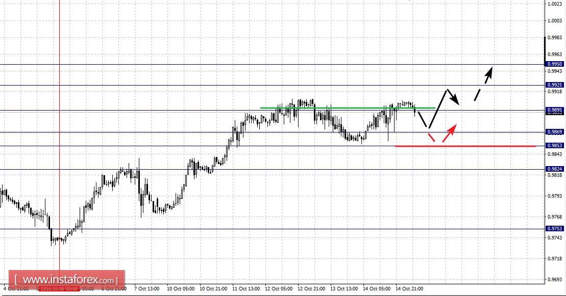 Краткосрочное движение книзу возможно в коридоре 0.9869 – 0.9853, пробой последнего значения приведет к углубленной коррекции, здесь цель – 0.9824, этот уровень является ключевой поддержкой для верха.