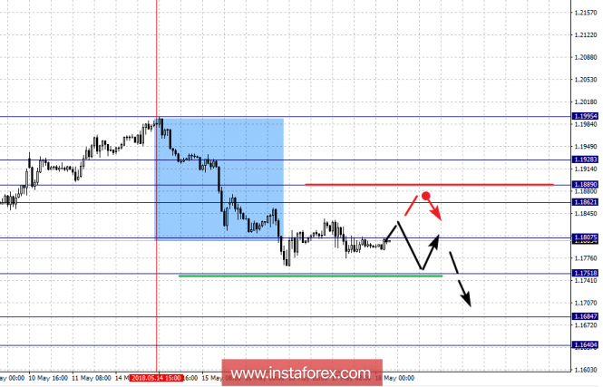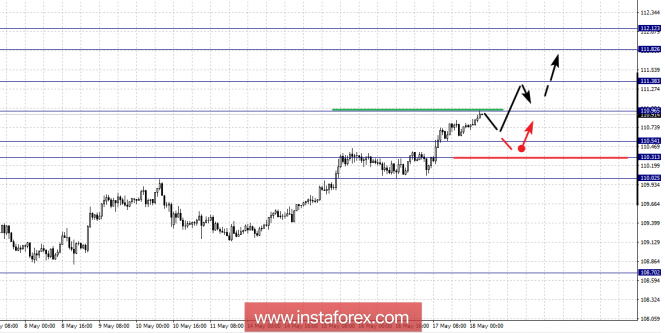 По паре Евро/Доллар уровень 1.1890 является ключевой поддержкой для нисходящей структуры от 14 мая. По паре Фунт/Доллар нисходящая структура от 14 мая возобновила свои позиции в масштабе Н1. По паре Доллар/Франк ситуация находится в равновесном состоянии, отмены нисходящей структуры ожидаем после пробоя 1.0042. По паре Доллар/Иена продолжения движения кверху ожидаем после пробоя 110.96, уровень 110.31 является ключевой поддержкой. По паре Евро/Иена ситуация сместилась в восходящее направление, развития которого ожидаем после пробоя 131.00. По паре Фунт/Иена мы расширили потенциал для верха до уровня 152.15.