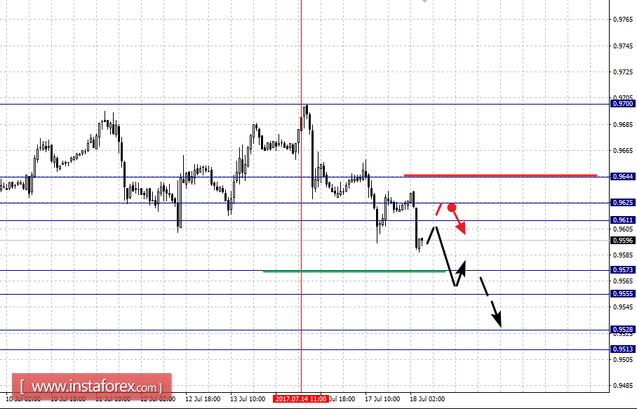 Краткосрочное восходящее движение возможно в коридоре 0.9611 – 0.9625, пробой последнего значения приведет к углубленному движению, здесь цель – 0.9644, этот уровень является ключевой поддержкой для нисходящей структуры.