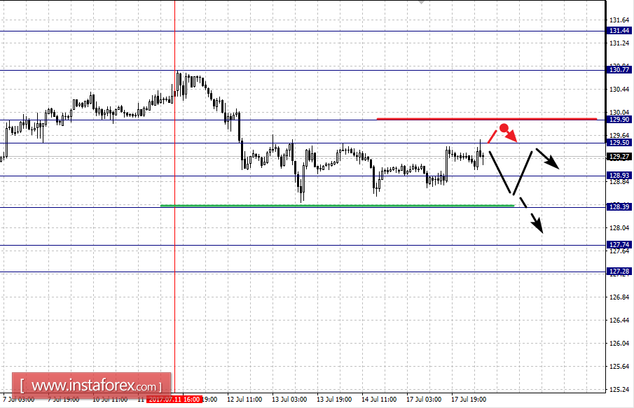 Краткосрочное восходящее движение возможно в коридоре 129.50 – 129.90, пробой последнего значения будет располагать к развитию восходящей структуры, здесь первая цель – 130.77.