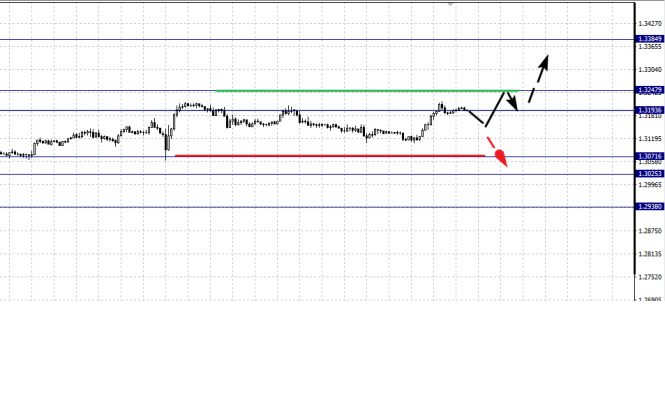 Краткосрочное восходящее движение возможно в коридоре 1.3155 – 1.3178, пробой последнего значения приведет к углубленной коррекции, здесь цель – 1.3216, пробой этого уровня будет располагать к развитию восходящей структуры, здесь цель – 1.3289.