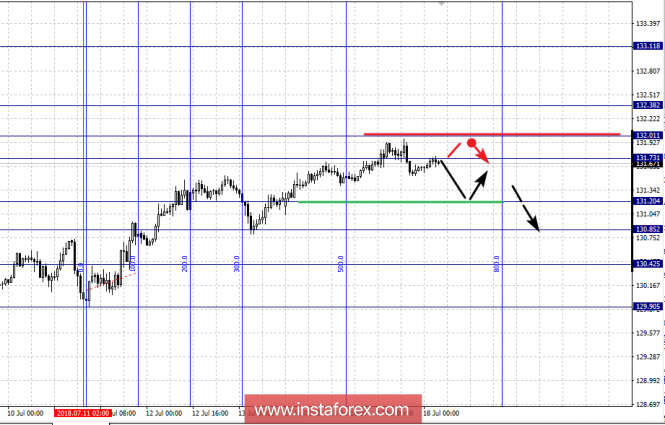 Краткосрочное нисходящее движение возможно в коридоре 131.20 – 130.85, пробой последнего значения приведет к углубленной коррекции, здесь цель – 130.42, этот уровень является ключевой поддержкой для восходящей структуры от 11 июля.