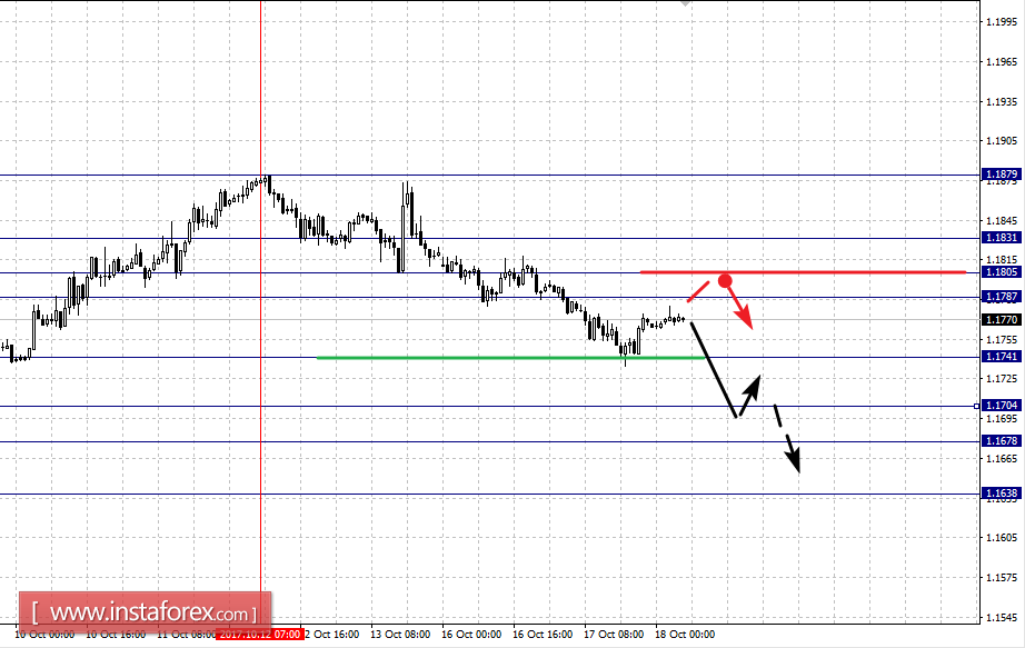 Краткосрочное восходящее движение возможно в коридоре 1.1787 – 1.1805, пробой последнего значения приведет к углубленному движению, здесь цель – 1.1831, этот уровень является ключевой поддержкой для нисходящей структуры.