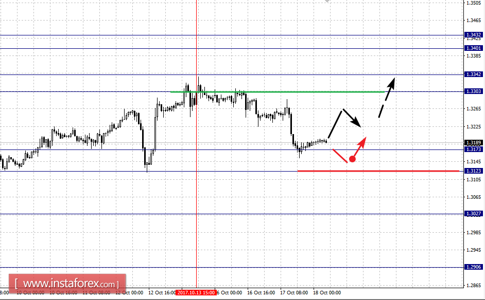 Краткосрочное нисходящее движение возможно в коридоре 1.3173 – 1.3123, пробой последнего значения приведет к развитию нисходящего движения, в данном случае потенциальная цель - 1.3027.