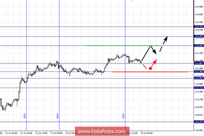 По паре Евро/Доллар продолжения движения книзу ожидаем после пробоя 1.1613, цена находится в активных зонах для развития импульса. По паре Фунт/Доллар продолжения развития нисходящей структуры от 16 июля ожидаем после пробоя 1.3031. По паре Доллар/Франк цена находится в корректировочной зоне от среднесрочных начальных условий для низа 13 июля, уровень 0.9957 является ключевым сопротивлением. По паре Доллар/Иена ожидаем движение к уровню 113.40. По паре Евро/Иена цели остались без изменения, однако цена формирует потенциал для низа от 17 июля. По паре Фунт/Иена формируется нисходящая структура от 16 июля, продолжение движения книзу возможно после пробоя 146.69.