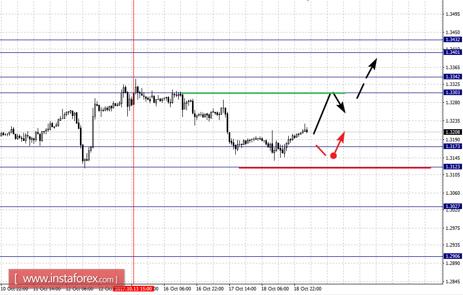 Краткосрочное нисходящее движение возможно в коридоре 1.3173 – 1.3123, пробой последнего значения приведет к развитию нисходящего движения, в данном случае потенциальная цель - 1.3027.
